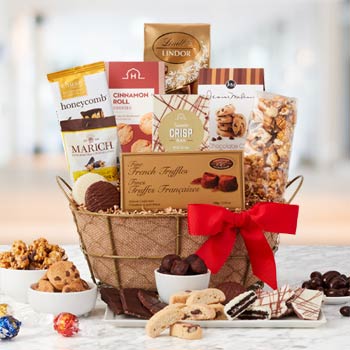 Indulge your chocolate senses with one of our most tempting gift baskets available! Our Chocolate Gift Basket will make a one of a kind statement for corporate clients, business associates, or associate incentives. Filled with rich chocolate sweets like decadent truffles and chocolate-covered pretzels, this gift will be perfect for sharing.