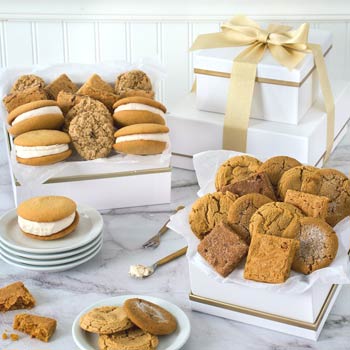 Elevate your gifting game with our exquisite Executive Bakery Assortment Gift Tower. Crafted with care and attention to detail, this tower is a testament to culinary excellence. Perfect for any occasion, from corporate events to personal celebrations, it promises to delight even the most discerning of recipients. Indulge in a symphony of flavors with handcrafted cookies, mini bundt cakes and buttery blondies where each offers a taste experience like no other.