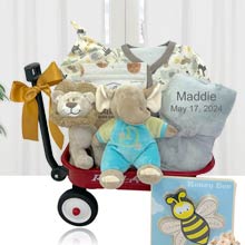 Beautifully designed Personalized Baby Boy Gift Baskets or Baby Girl Gifts are available and would make a treasured baby shower gift. The sweet newborn's name can be professionally embroidered to create a special keepsake that will last a lifetime. Adorable themes and exceptional quality are just what the new parents will receive with a first class personalized baby gift.